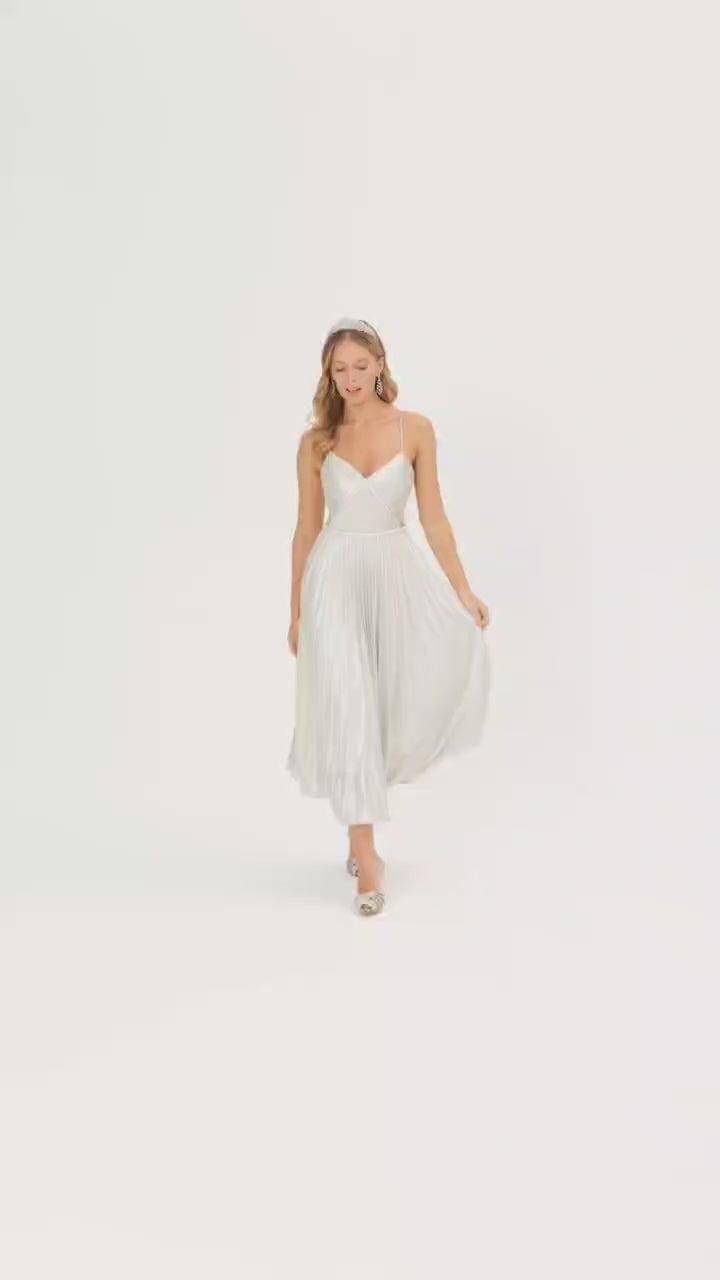 The Dianella Dress is a bold and daring piece that is perfect for the modern woman who wants to make a statement. With its V-neckline and spaghetti straps, this dress exudes a sense of effortless glamour, while the cut-out waist adds a touch of sexiness. The pleated midi skirt creates movement and texture, adding to the overall visual interest of the dress.
